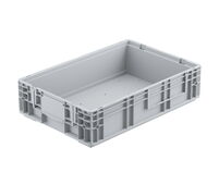 Der KLT Behälter VDA-RL-KLT unterscheidet sich durch seinen glatten Boden mit Wasserablauflöchern vom VDA-R-KLT. Er ist ideal für den Einsatz bei einer geringen bis mittleren Belastung geeignet.
